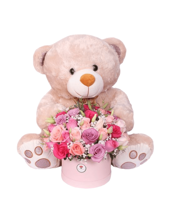 Oso de peluche de 60 cm y 56 rosas Medidas: 70 x 40