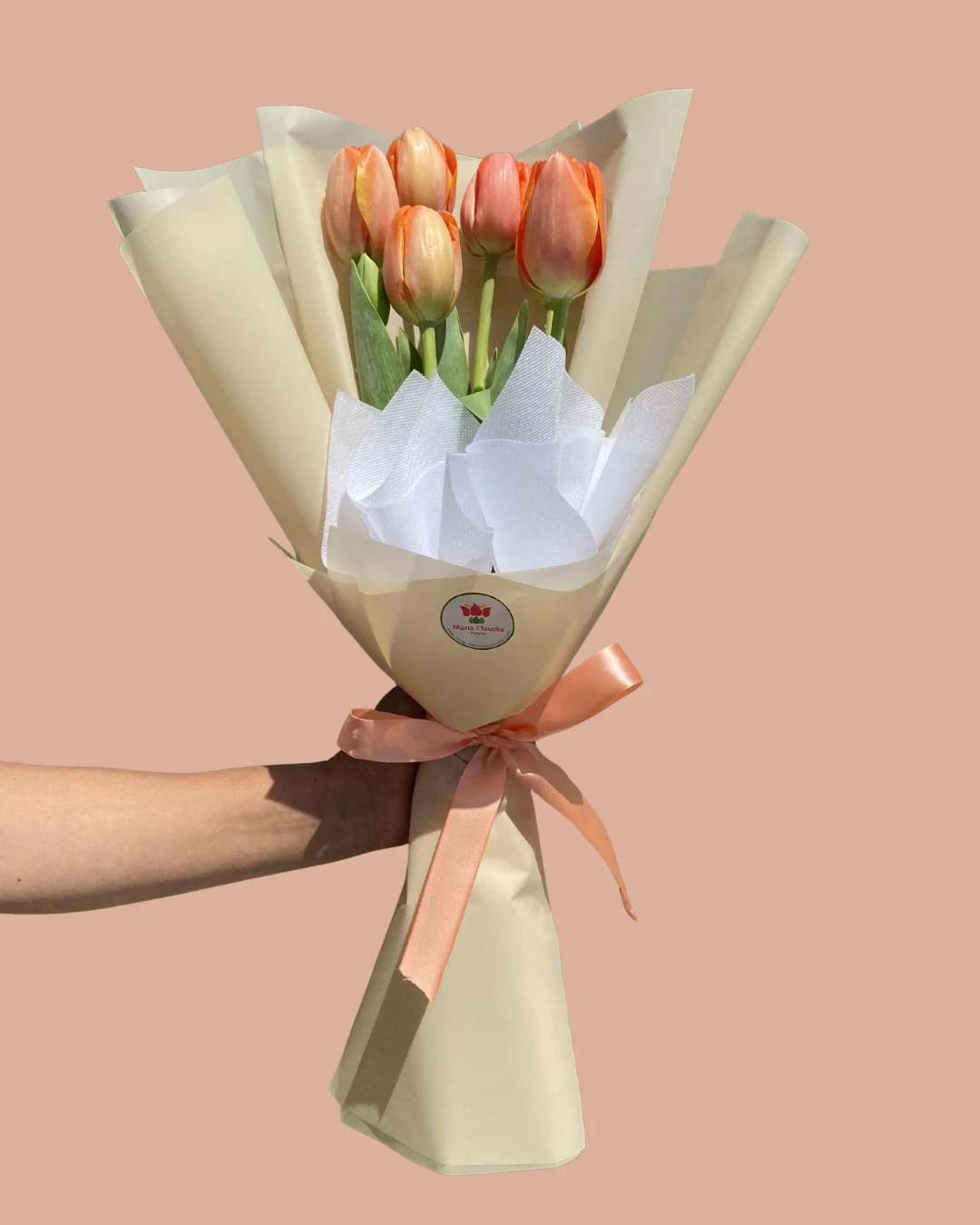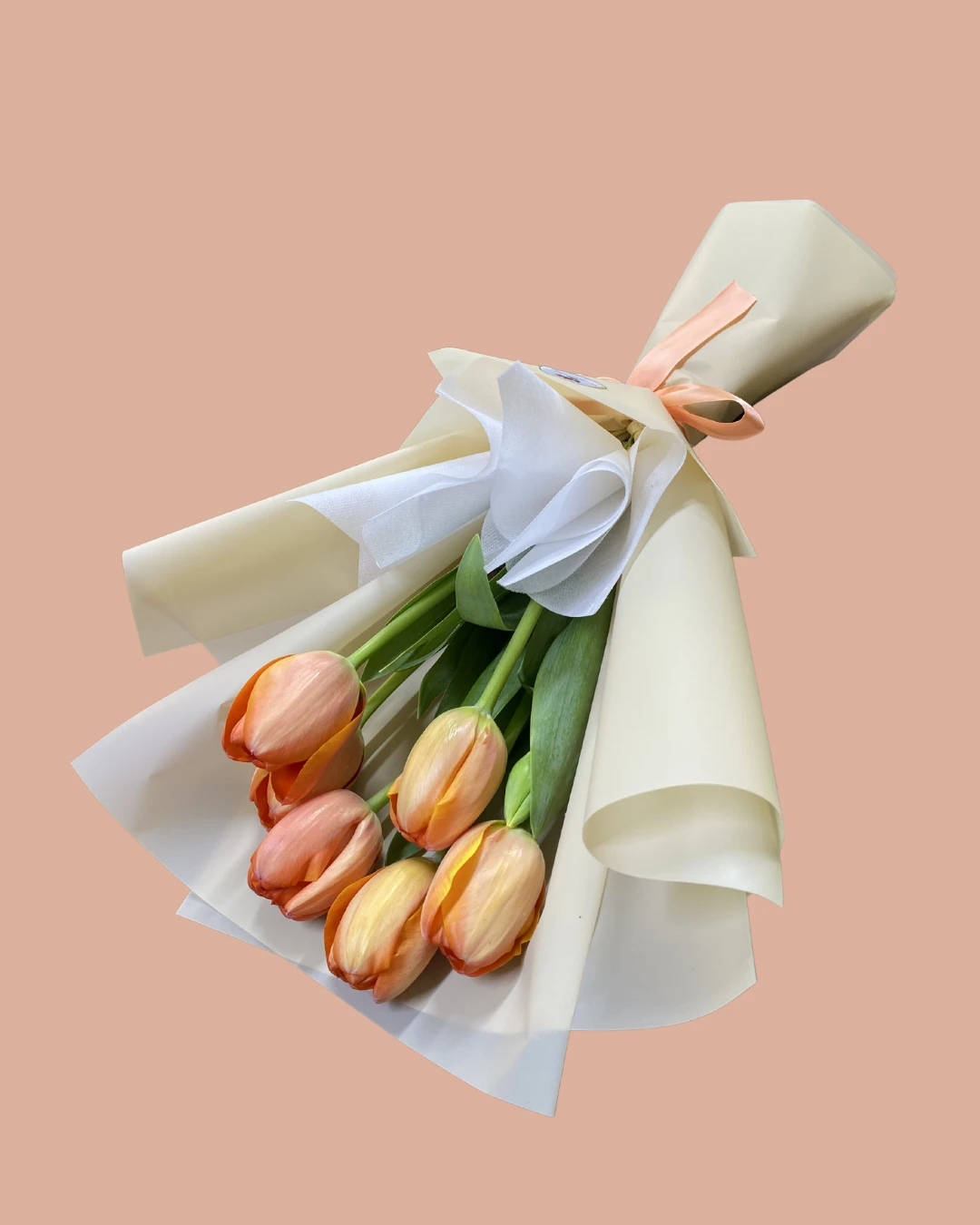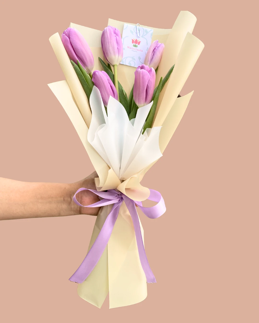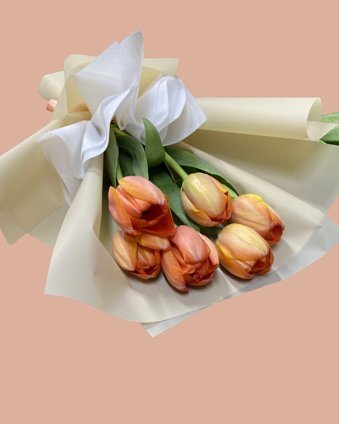 5 tulipanes con papel coreano y lazo
