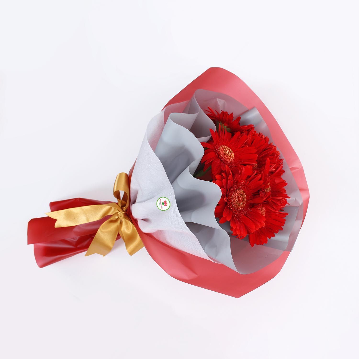 10 gerberas, papel y lazito